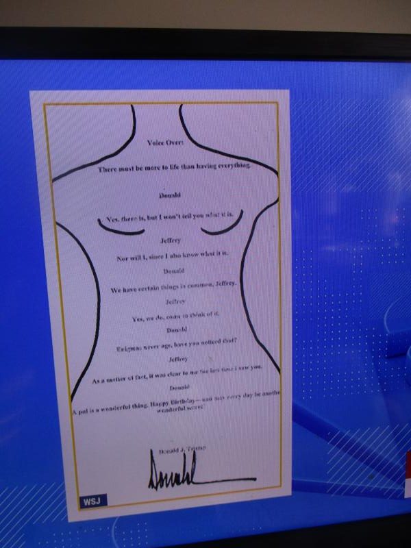 Birthday Wish in Notorious “Birthday Book” from President Trump to Friend Sex-Trafficker Epstein Released by Oversight Democrats.