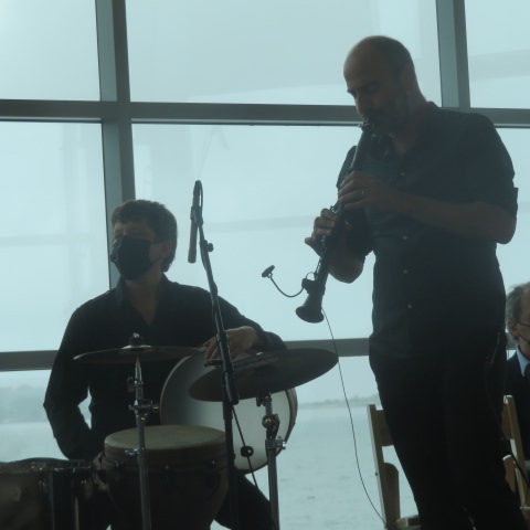 Last night a concert on the Eastern Promenade went forward, It was by Kinan Azmeh’s City Band. The New York City group played at the Fort Allen Park Bandstand. (See above photo.)